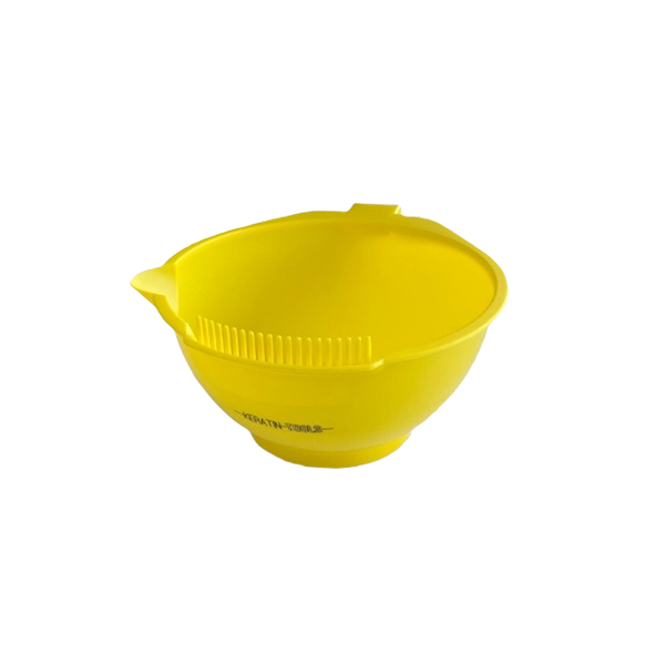 Пластиковая миска для смешивания составов при окрашивании, кератиновом выпрямлении и ботоксе волос. Удобная форма, прочный материал, не впитывает запахи.
