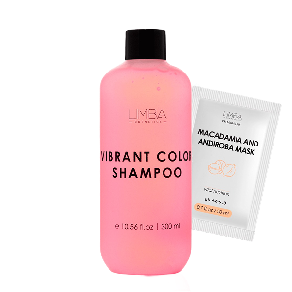 Шампунь Limba Cosmetics Vibrant Color Shampoo предназначен для домашнего ухода за окрашенными волосами. Шампунь продлевает стойкость цвета и улучшает качество окрашенных волос, а также заботится о коже головы после воздействия красителей.